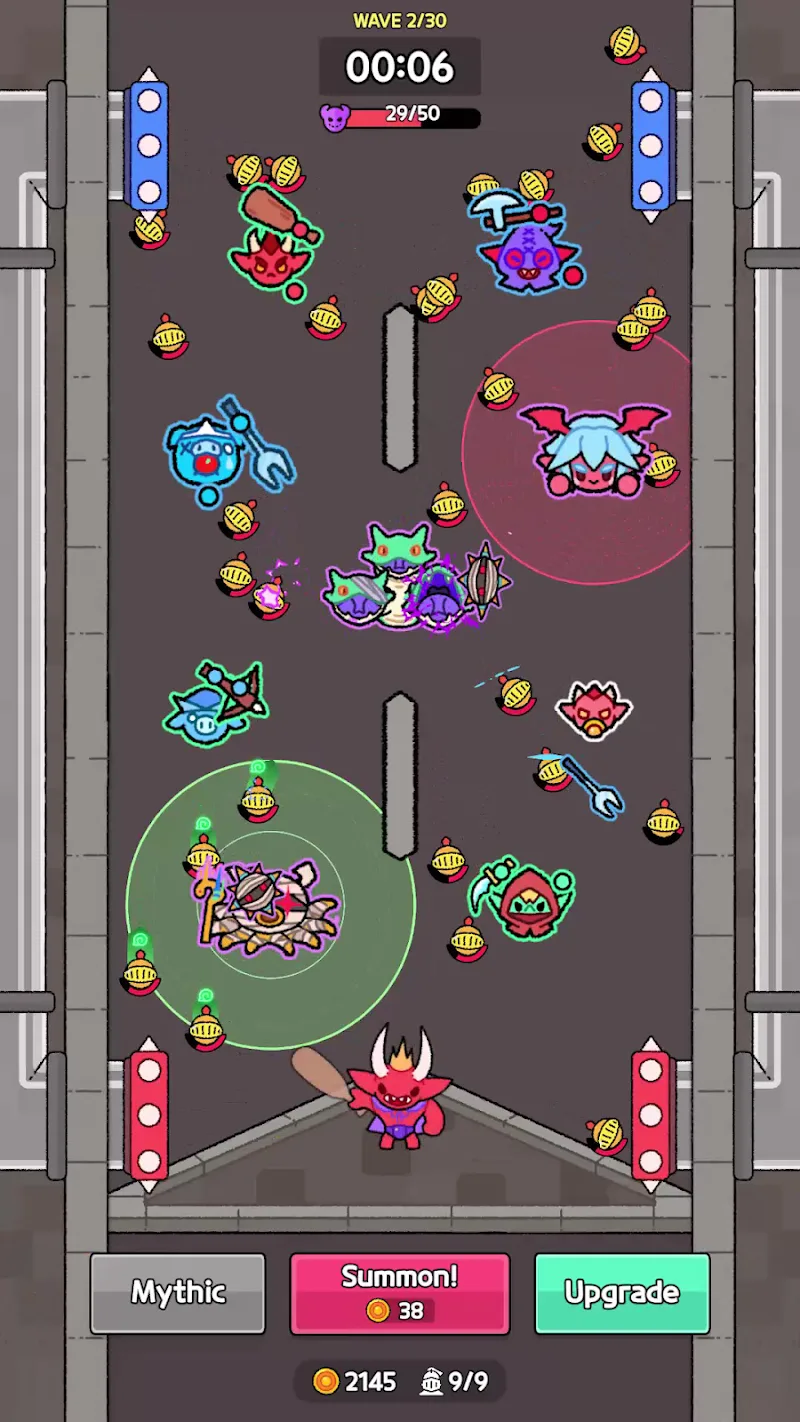 Hellbounce MOD APK: Merge Defense possesses intuitive gameplay which means you will find great depth in the gameplay. It is not a simple tower defense game. It is an active battle game with barriers and weapons in the form of units that you summon. When you summon identical units, you are able to merge them to increase the damage and unlock additional synergies that will obliterate the gods that are trying to breach your defense.