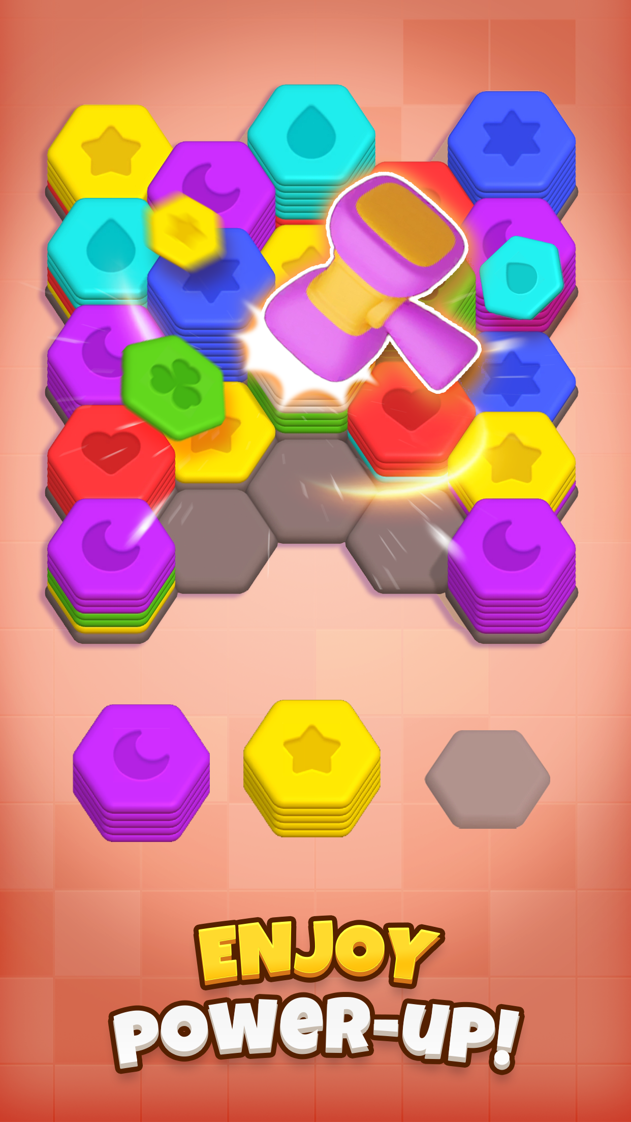 – Power-ups & Boosters: Use bombs, rainbow hexagons, and other special boosters to crush your way through tough levels.
