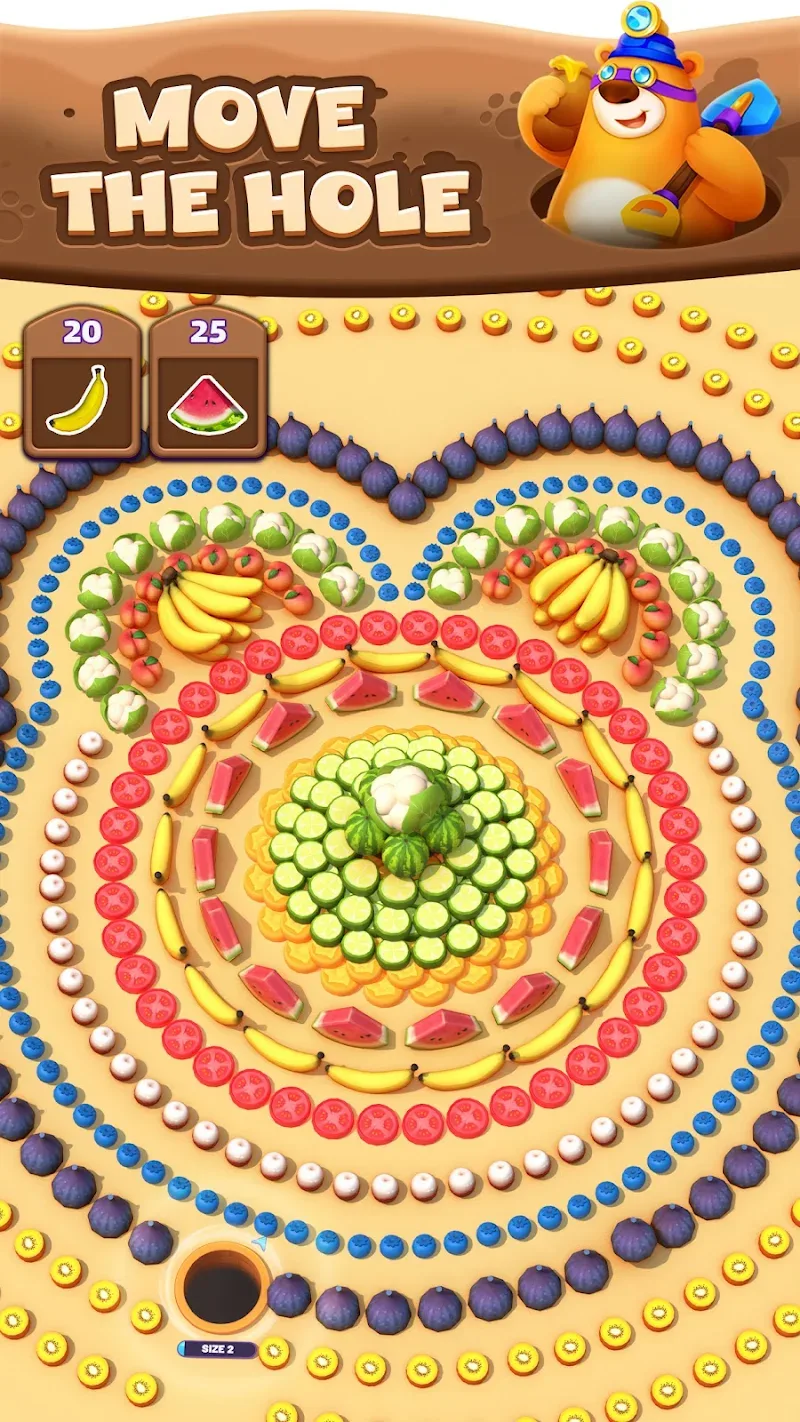 Hole em all combines easy movements with difficult challenges. Moving your black hole takes some thought for sure. Early on only focus on the smaller things to get your size up quickly. Every level will have new obstacles that test your awareness so learn where to let go. Playing the game helps you upgrade to faster movements and stronger pulling abilities.