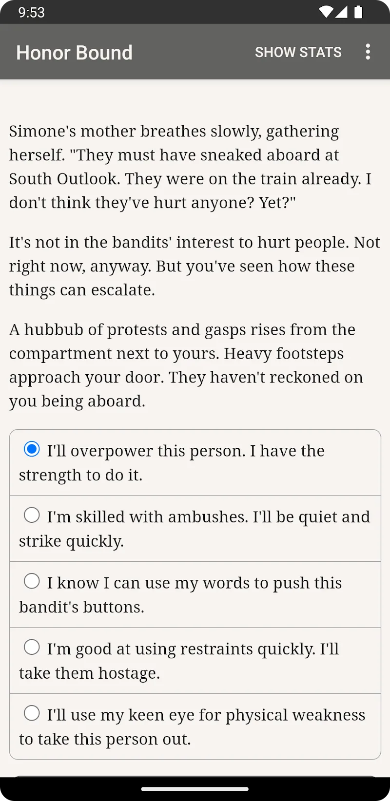 Start your journey with a colossal 595,000-word text adventure, where you can shape your identity, make influential decisions, and control your future with the RPG Honor Bound MOD APK.