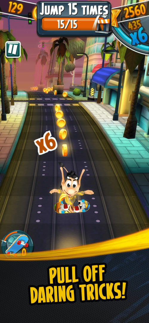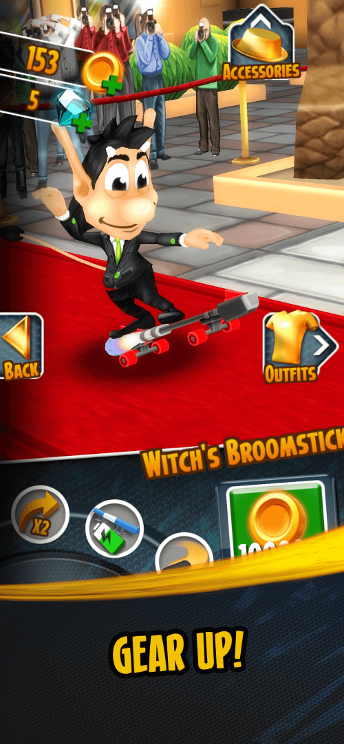 As you progress, the score multiplier increases based on your mission completion level. The more missions you finish, the faster your score climbs. Collecting shiny coins is vital for your progression, as they allow you to visit the in-game shop to upgrade your power-ups, making them last longer and provide better bonuses. Use your talents in jumping, evading, and grinding to outsmart the paparazzi and achieve the highest score possible.