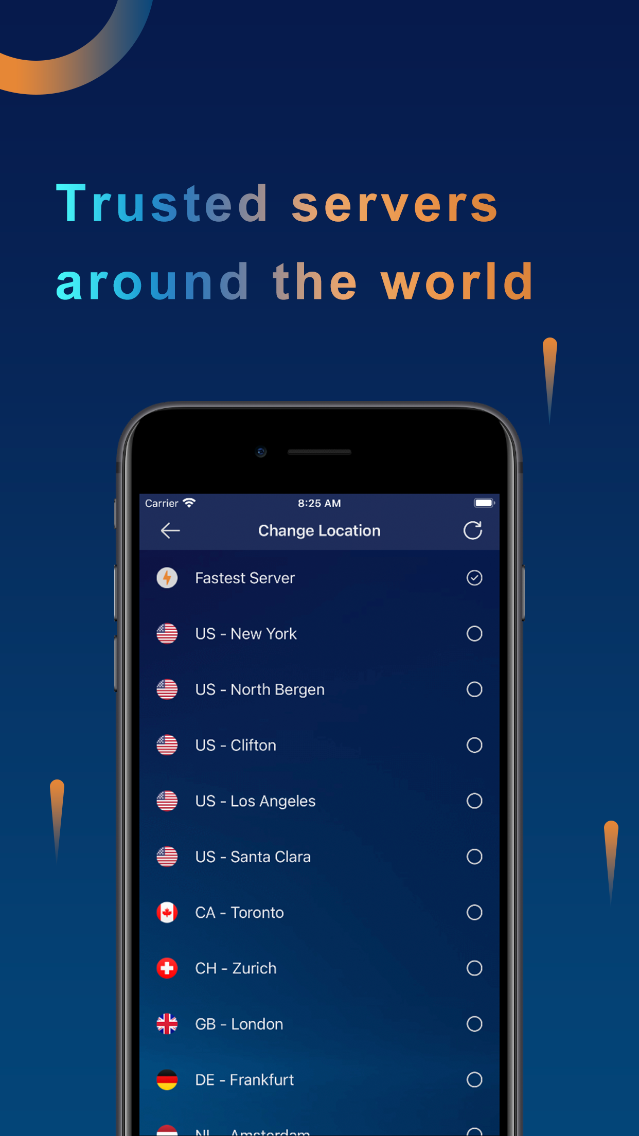 Enjoy high-speed VPN connections optimized for streaming, gaming, and browsing. With multiple global server locations, you can connect to the fastest server near you for smooth performance and low latency.