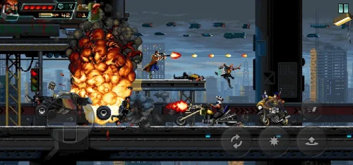 Huntdown MOD APK is not your typical run-and-gun platformer. It introduces a tactical cover system that allows you to dodge incoming fire and plan your next move. Use the environment to your advantage by ducking behind crates or using verticality to gain the upper hand. Your arsenal is vast, ranging from classic shotguns and assault rifles to futuristic laser weapons and powerful explosives. Mastery of these tools is essential as the difficulty ramps up, challenging your coordination and tactical thinking at every turn. The game also supports local co-operative play, allowing you and a partner to double the firepower and tackle the criminal underworld together.