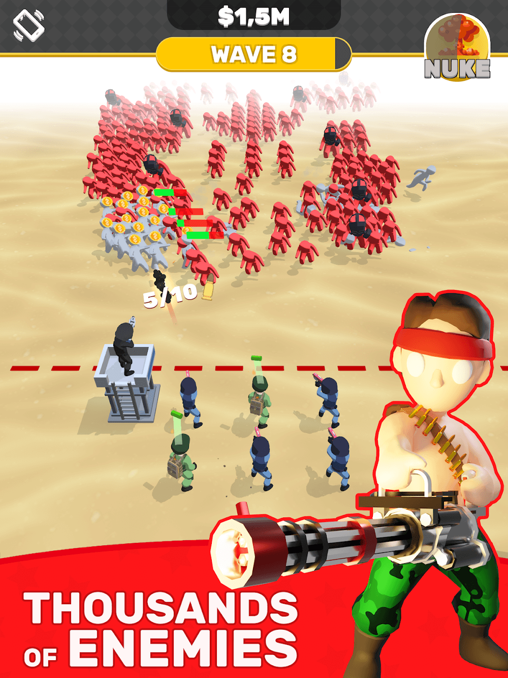 - Innovative Merge Mechanics: Take your units to the next level! Combine similar units to create more powerful soldiers with enhanced attributes and higher fire rates. Watching your squad evolve is both satisfying and strategically necessary.