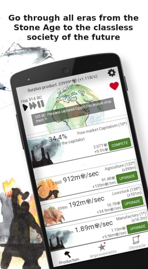 Lead humanity through the ages! Build, rule, and evolve your empire from ancient times to the future in this epic idle history strategy game. Write your story!