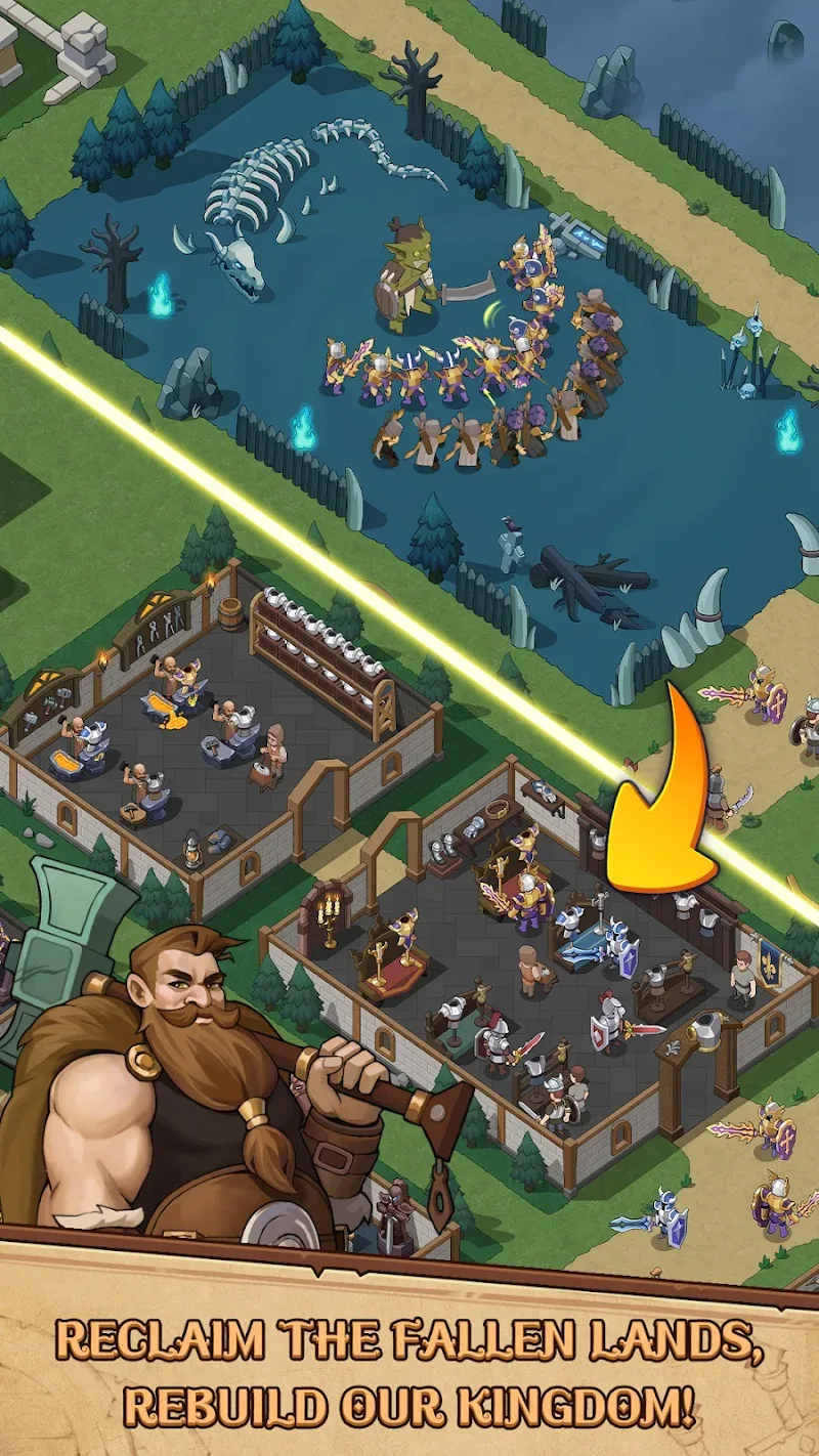• Idle Progression System: Your quest for restoration never stops. Even when you are away, your merchant empire and army continue to work, gathering resources and preparing for the next big offensive.