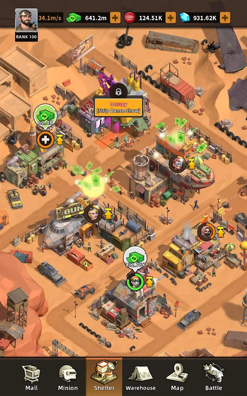 • Build and Expand Your Territory: Start from a humble hideout and grow into a sprawling criminal fortress. Manage resources, upgrade facilities, and claim the wasteland piece by piece.