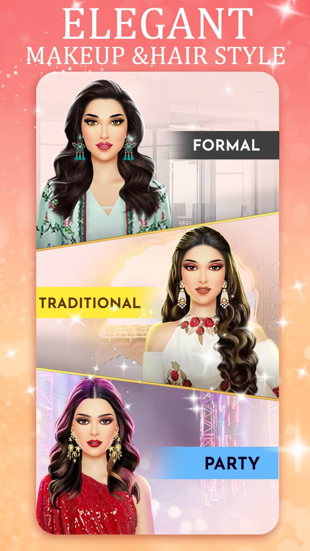 Indian Fashion Dressup Stylist MOD APK is built with simple and easy-to-use controls, so no matter your age, you will enjoy these fun makeover mechanics. Each stylist job begins with choosing a model and an event theme. You will then have to build a creative outfit to match the event theme. The game has a highly detailed dressing system and lets you choose everything.