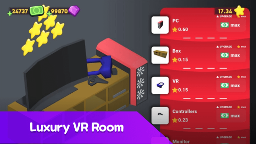 Create the ultimate gaming empire! Build a business from the ground up in this addictive idle tycoon simulator. Manage high-tech gaming PCs and premium coffee to grow your empire!