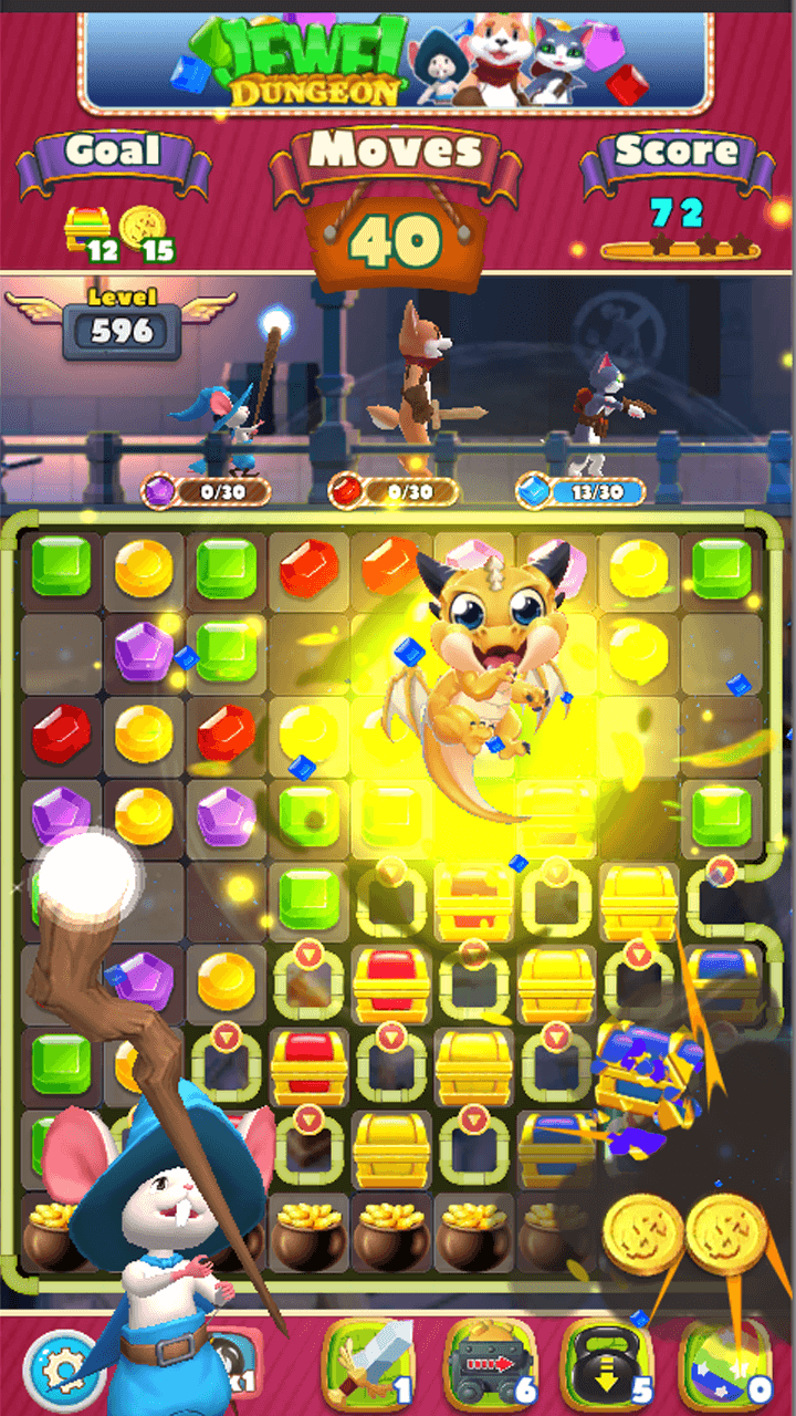 The Dragon Egg: This is the best power-up! You need to match five jewels in a line to generate the Dragon Egg. Swapping this with any jewels on the board will trigger a blast of all jewels of the same color all over the board.