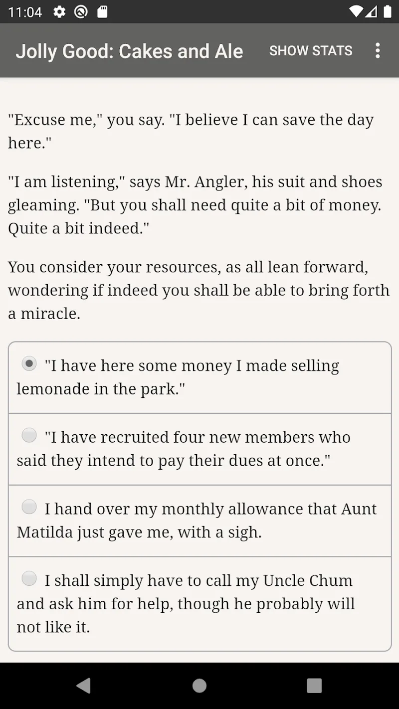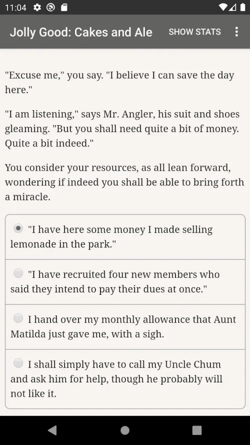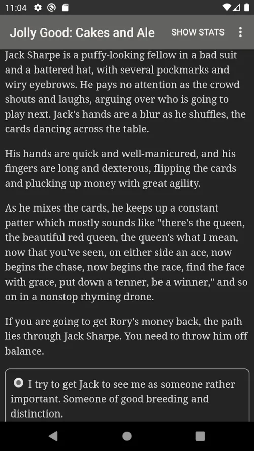 Showcase your daring escapades in Jolly Good MOD APK: Cakes and Ale, an interactive multi-genre novel with over 1.2 million words written by Kreg Segall. As a fallen noble, you have to steer through the socially dangerous aspects of the British elite, dealing with your standing, your social club, and your love interests. This is an interactive game with a huge number of choices and possibilities. The game is driven by a masterfully written story, and each of your choices will shape your victory, or massive failure.