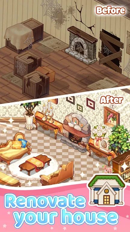 This game is not just to let you renovate homes. With Kawaii Decor MOD APK: Renovate, the possibilities are endless! You can design and style homes how ever you like. No matter if you like clean and simple styles or if you like big and colorful styles, you can do it all! Use all of the items in the game to create amazing spaces and tell a story with your designs and pieces. You can create large and extravagant pieces, or keep it simple with small pieces.