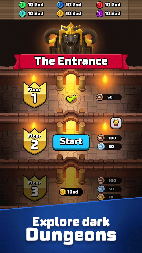 Your warriors will be sent into monster-infested dungeons where they will be able to defeat the bosses and unlock treasure chests to find powerful artifacts to further strengthen your kingdom.
