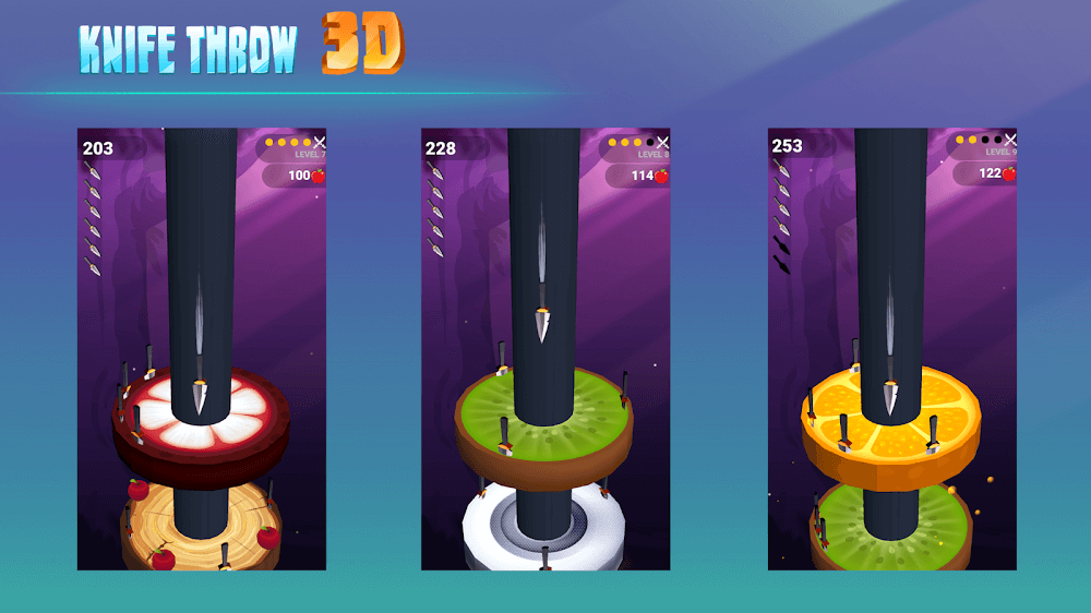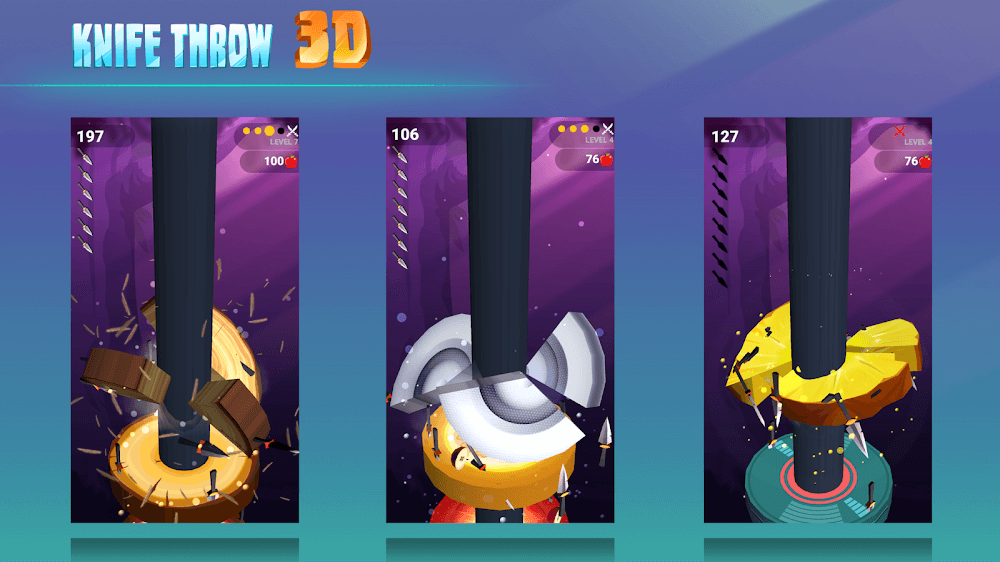 Improve your skill l in Knife Throw 3D MOD APK! Smash some logs, gain access to some legendary blades, and become a master thrower. Enjoy this 3D arcade action by downloading the game now!