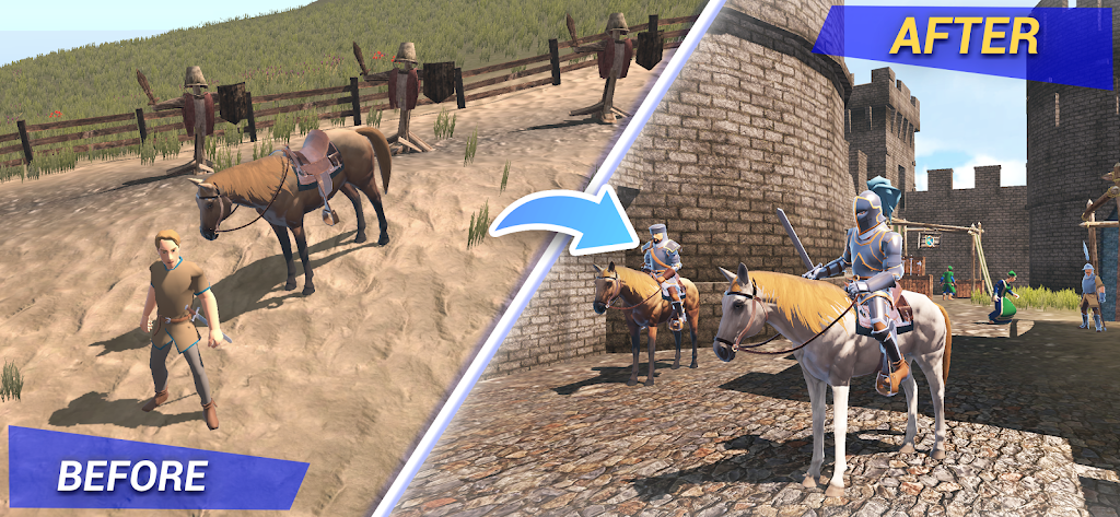 Knight RPG MOD APK combines traditional and modern action RPG elements. The training system forces you to balance your stats with attributes and your level of knowledge about the art of war and strategy. Combat here means more than spamming buttons. The essence of the game is in your ability to properly observe the behavior of your enemies and the environment. Use the surroundings to your advantage, drawing enemies into a tight spot or taking advantage of the height of your horse for a more dominant position.