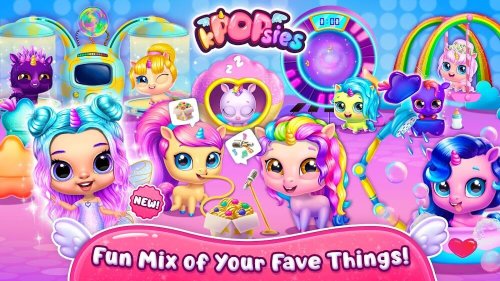Meet the Kpopsies MOD APK! Hatch, collect, and raise cute virtual unicorns. Build a pop star band, dress them up, and explore a magical world of music and fun!