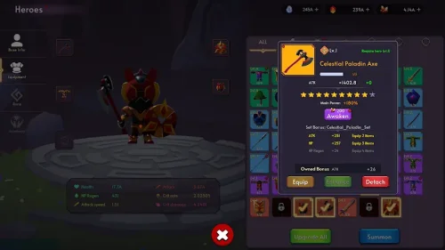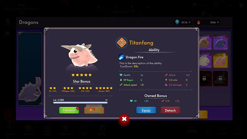 The core of Little Dragon Heroes lies in its deep yet accessible strategy. Players begin by summoning their first dragon and clearing stages in a vibrant fantasy world. As you progress, you unlock the ability to manage a full team of five dragons. Equipment plays a vital role; find and upgrade magical gear, artifacts, and gems to boost your dragons’ stats. The idle nature of the game means that while tactical decisions are made by the player—such as when to activate ultimate skills or how to allocate talent points—the repetitive combat is handled automatically, making it the perfect companion for busy lifestyles.