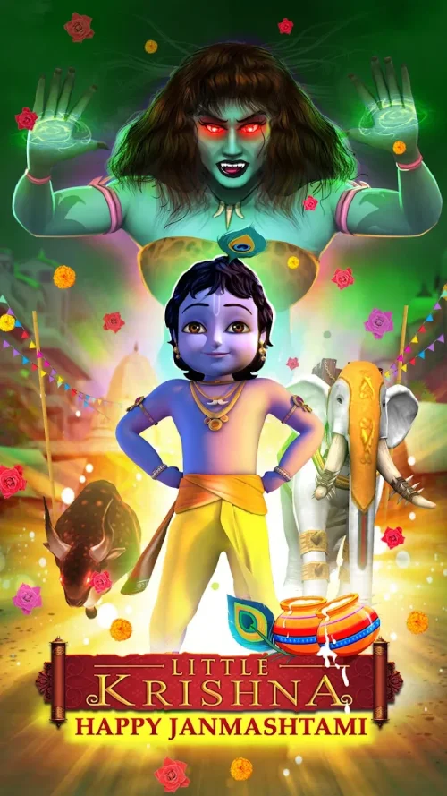 • Rich Mythology: Immerse yourself in the prankful adventures and heroic tales of Little Krishna MOD APK, featuring storybook-style cutscenes that drive the narrative forward.