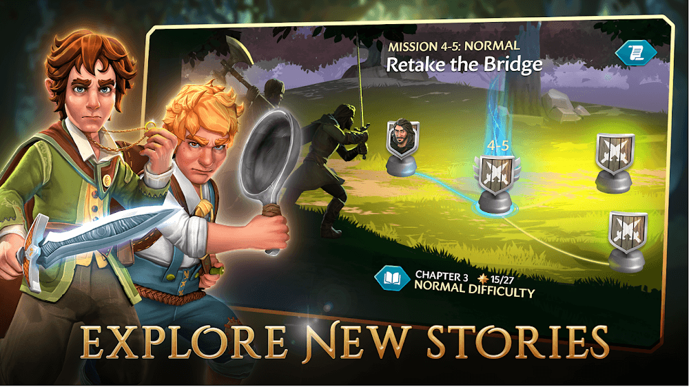 Embark on an unforgettable adventure with LoTR MOD APK: Heroes of Middle-earth and challenge yourself with complex combat strategies as you tap into J.R.R. Tolkien’s genius. Middle-earth is in turmoil with the discovery of a new Ring of Power, and it is up to you to dictate its destiny. Rewrite the legends of the Third Age. Will you make history, or will you fall into the hands of shadow? Enjoy the all-new adventure and experience the depths of the novels of The Lord of the Rings and The Hobbit.
