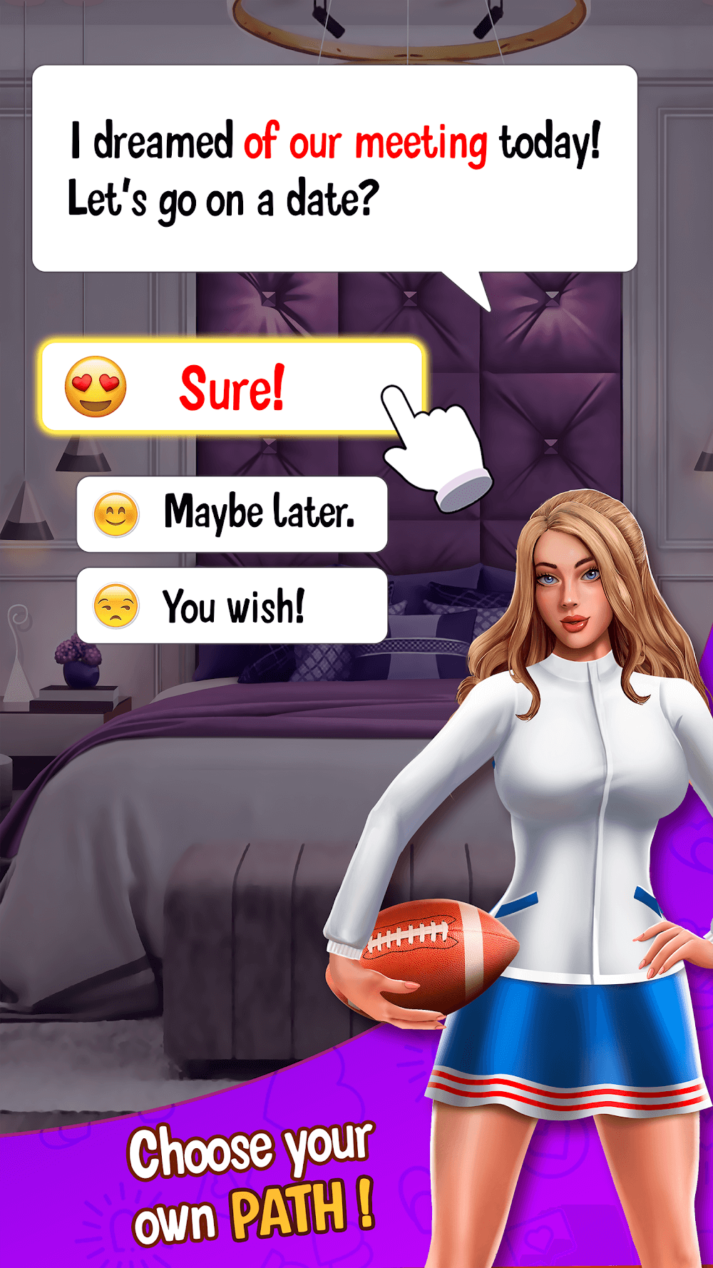When you play Love Camp, you enter a new, beautiful and complex universe. There are many new and different characters. There are secrets waiting to be discovered as you play. There are many new and beautiful girls for you to meet. Your journey with them will be different from everyone else’s. You will make many choices and some will be harder than others. Your choices will create unexpected changes and new, emotional experiences. You will create and form emotional bonds with girls. You will feel alive!