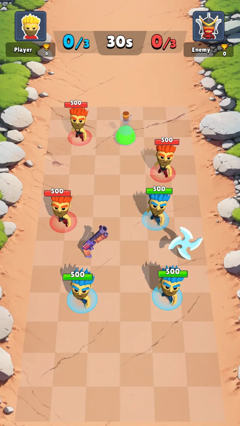 • Competitive Arena Mechanics: Outmaneuver your rivals by securing key positions and predicting weapon drop locations.