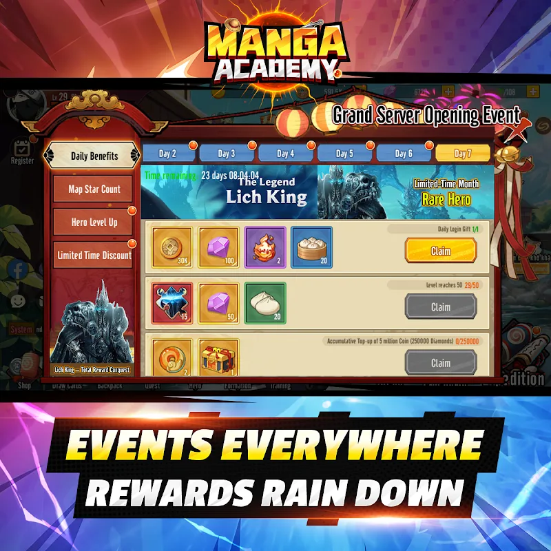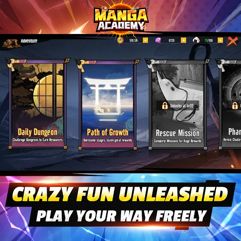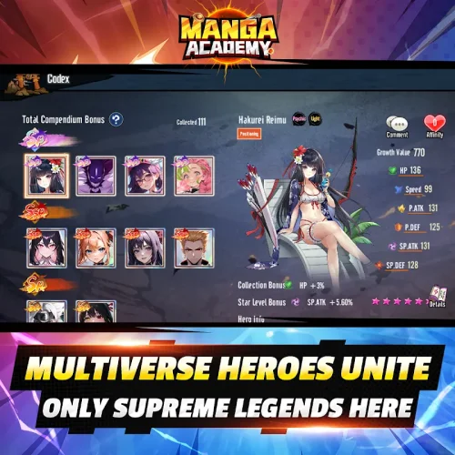 Manga Academy MOD APK: Multiverse War fuses RPG Deep Progression with Strategic Team Building. Players Start the Game by Assembling a Team of Champions and Decide Which Players Out of the Group. The Ranking System Determines the Level and Strength of Each Hero Team and Helps the Players with Team Selection.