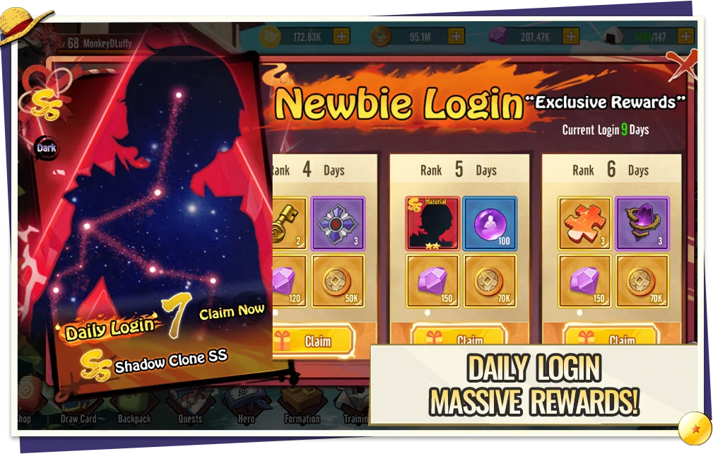 Build your dream manga team! Pave your way with iconic legends in jaw-dropping crossover fights, unlock amazing abilities, and defeat the most devious enemies in the manga action RPG!