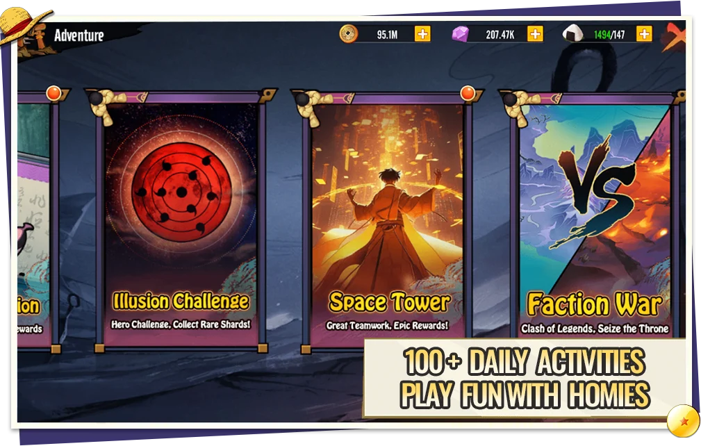 With Manga War MOD APK, you can experience high-speed action blended with RPG strategy. Fiery manga legends are ready to battle. You will experience one-off crossover events where you can recruit, train, and command powerful warriors with divine abilities and varying types of combat skills.