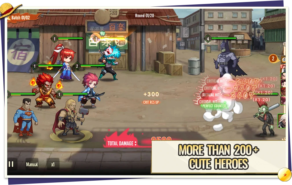 Legends Manga Heroes: Summon a variety of warriors, with heroes having their own specialties, attack styles, and of course, their iconic characters.