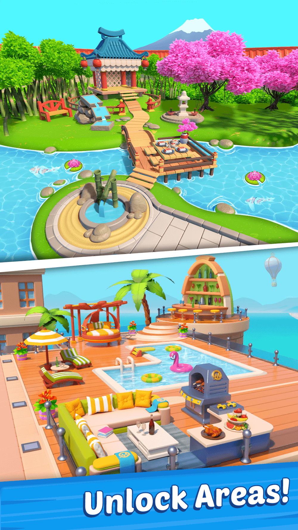– Diverse Locations: Unlock and build restaurants in beautiful, exotic places, each offering unique themes and gameplay challenges.