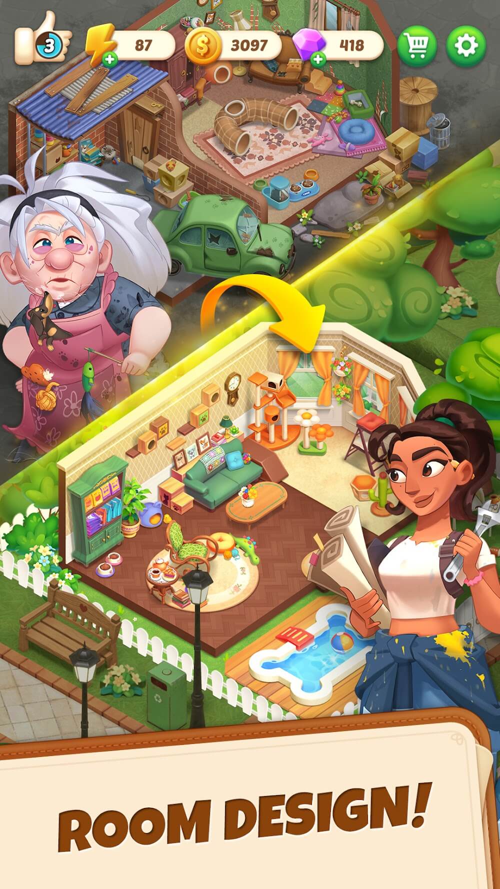- Deep Character Stories: This isn’t just about furniture; it is about people. Meet a diverse cast of characters, each with their own secrets and motivations. Help them find happiness through the power of a home makeover.
