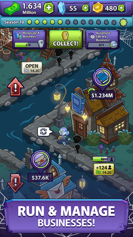 Construct a frightening empire in Monster Country Idle Tycoon MOD APK! Manage spectral enterprises, hire monster managers, and generate idle earnings in this captivating simulation.