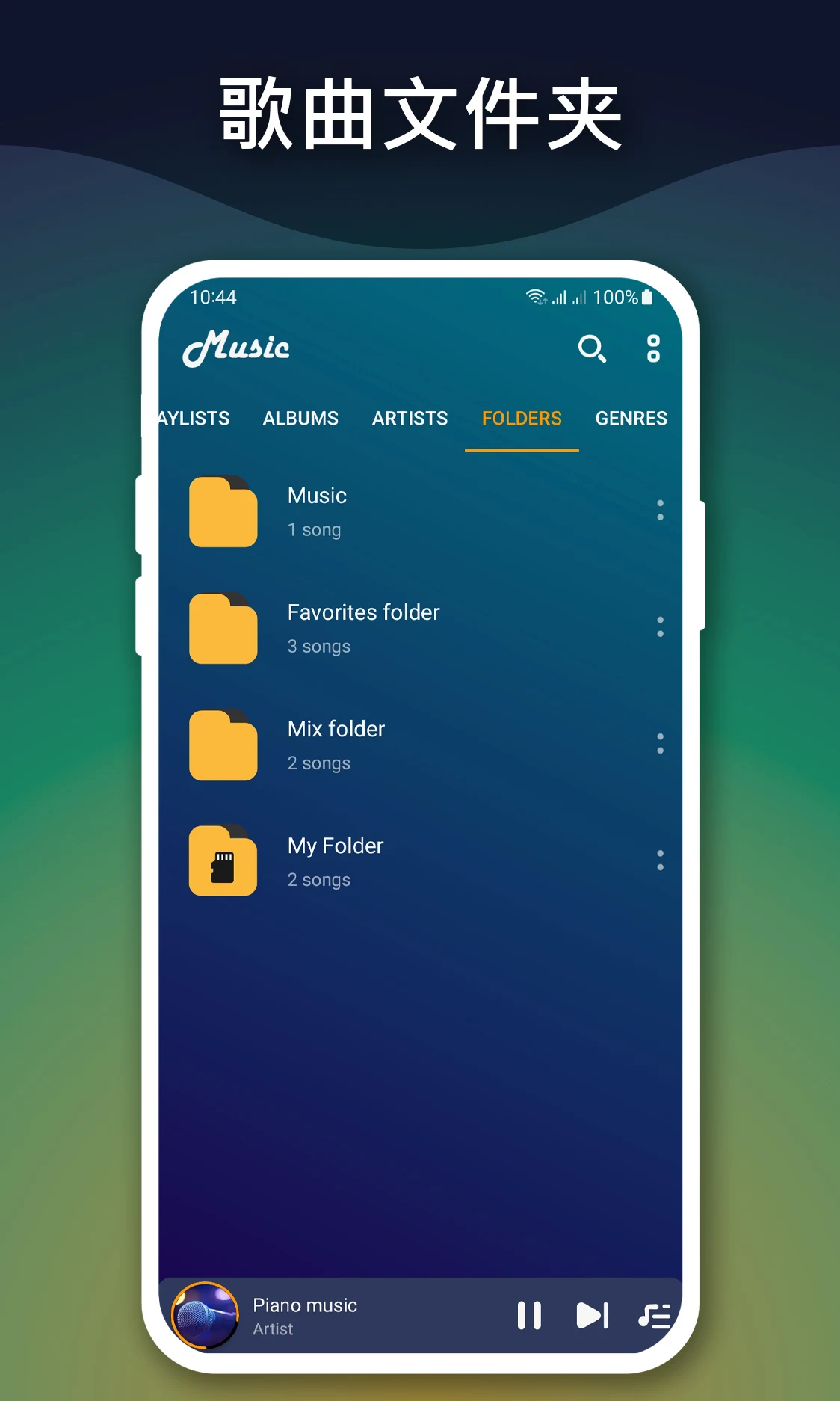 Music Player supports a wide range of audio formats and offers a smooth, fast, and intuitive interface that makes managing and enjoying your music effortless. Browse your songs by artist, album, genre, or playlist, and rediscover your music collection with smart organization and lightning-fast search.