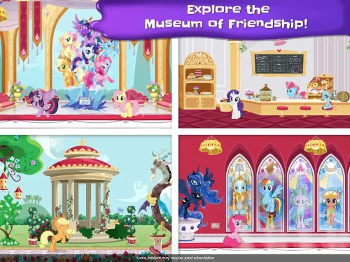 Restore twisted artworks of the Museum of Friendship by coloring art pieces using the Magic Color By Number function in the My Little Pony Color By Magic MOD APK. Paint artworks and get stars to see your amazing artworks.