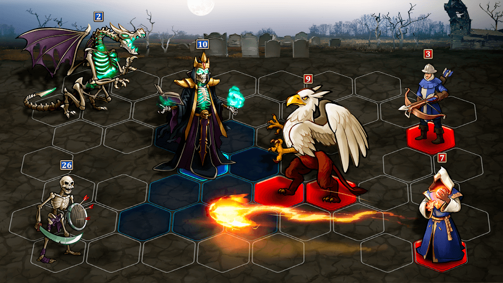 Strategy is at the heart of Necropolis. Diversify your tactics by recruiting from a variety of dark races. Build a team featuring bloodthirsty Vampires, ferocious Werewolves, and the relentless Walking Dead. Mixing and matching these races allows you to unlock hidden synergies and optimize your damage output. In this game, your arrangement and unit placement are just as important as your raw power. Experiment with different combinations to find the perfect balance for your playstyle.