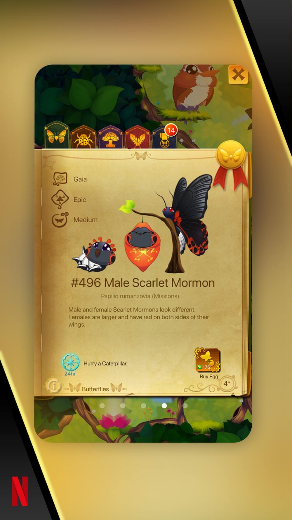 Discover and nurture over 400 real-life butterfly species in this relaxing sanctuary. A beautiful, educational experience exclusively for Netflix members!