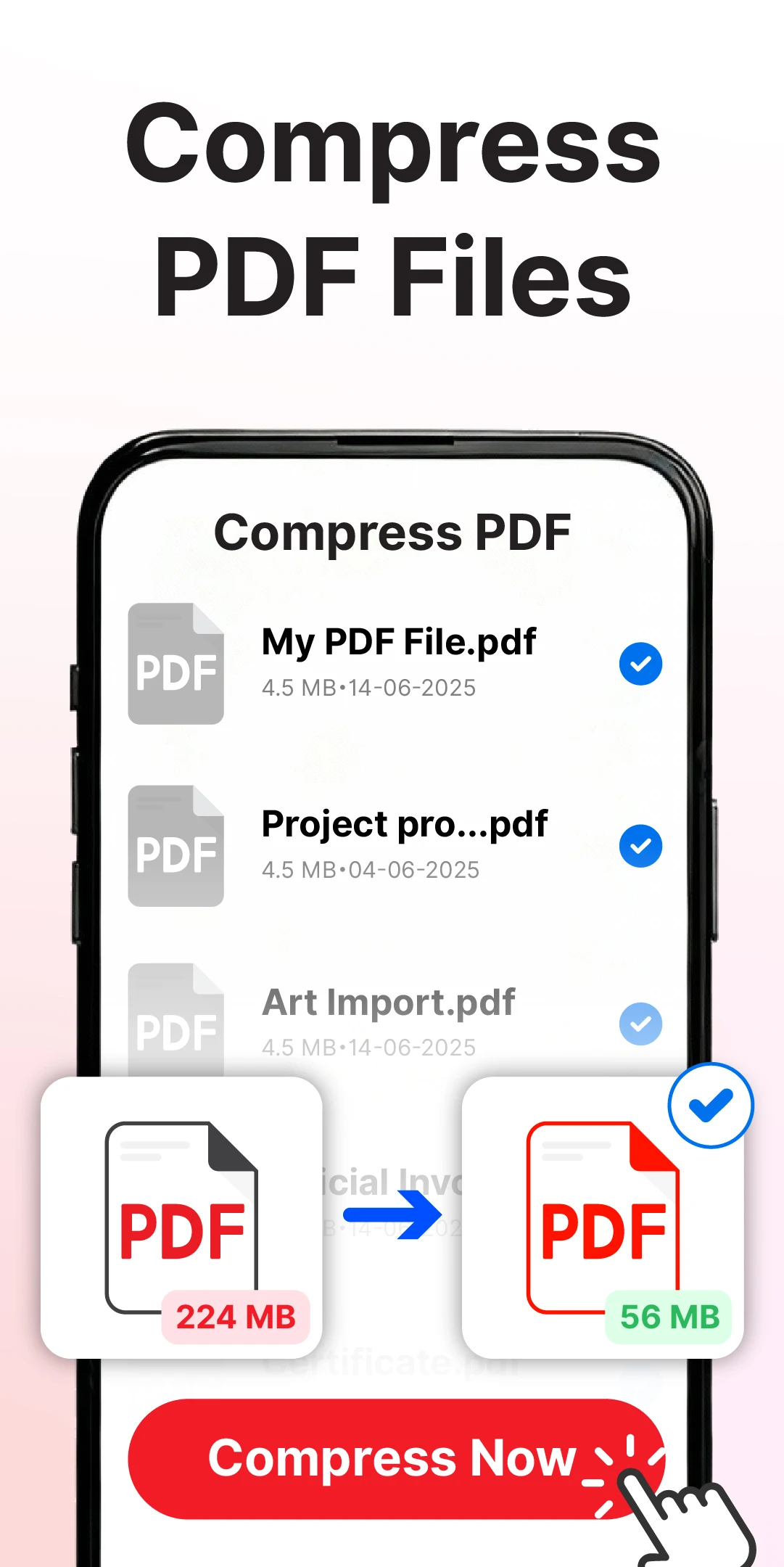 • Compress PDF files to save storage space