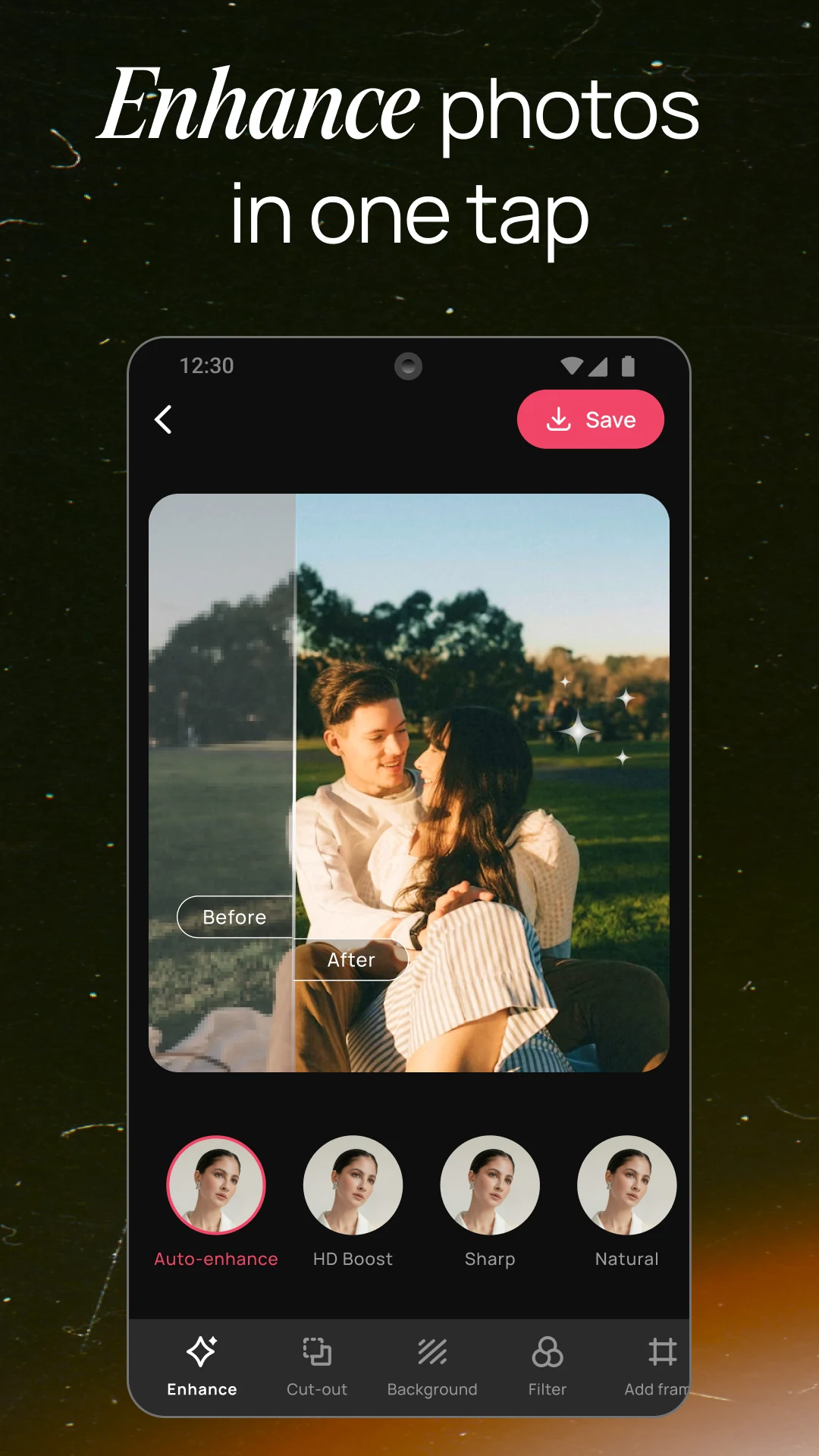 Fix and enhance images instantly with automatic optimization. Improve portrait clarity, sharpen details, and balance colors with a single tap.