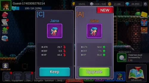 Pixel Clan MOD APK: Dungeon Squad weaves action roguelikes into its design. Each run offers a unique experience. As a 2D side-scroller, movement is fluid and will remind old-school gamers of the classic jump-and-run days. Each level offers a rapid challenge allowing for skill and speed.