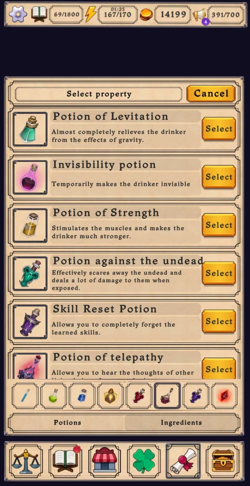 In this immersive alchemy simulator, every potion matters. Combine herbs, crystals, mushrooms, monster drops, and magical essences to unlock new recipes. Experiment freely to discover rare and powerful brews — from healing potions and mana tonics to invisibility elixirs and strength draughts.