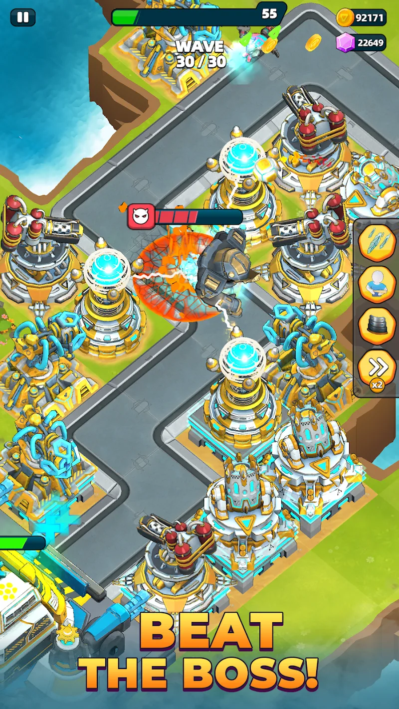 • EPIC BOSS BATTLES: Face off against massive enemy units that require precise timing and clever placement to defeat.