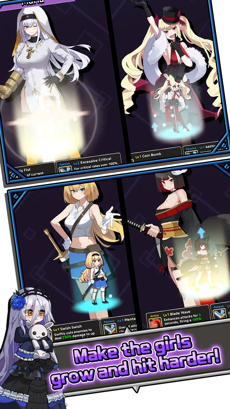 - Evolve Your Gang: Collect and upgrade a diverse mob of gangster girls. Each girl brings her own unique brand of chaos to the battlefield.