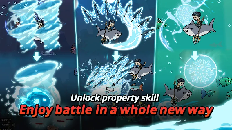 - Spectacular Skill Effects: Unleash devastating abilities inspired by the ocean’s fury. From massive whirlpools to crushing tidal waves, watch as your enemies are washed away by high-quality animations and satisfying combat feedback.
