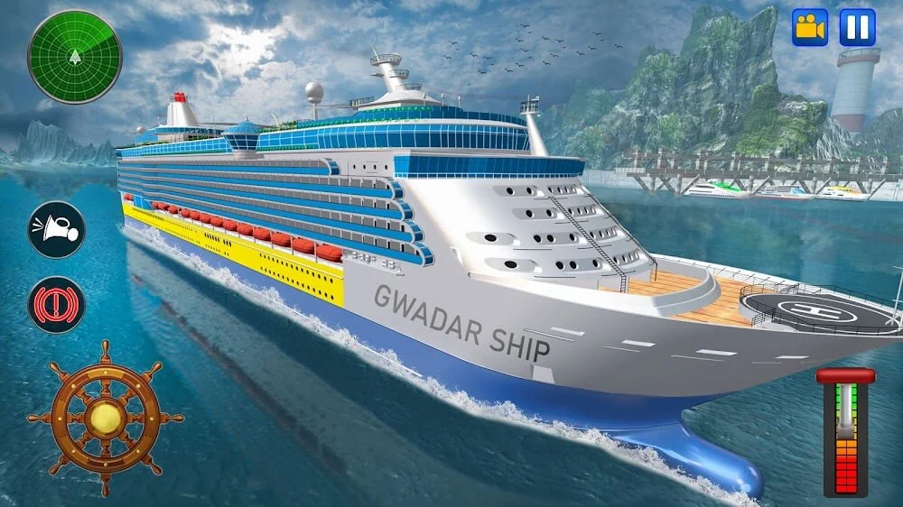Real Cruise Ship Driving Simul MOD APK focuses on a realistic control scheme that rewards precision. Players must manage engine throttles, steering rudders, and bow thrusters to maneuver these giants of the sea. The HUD provides essential data, including speed, depth, and radar to help you avoid obstacles.