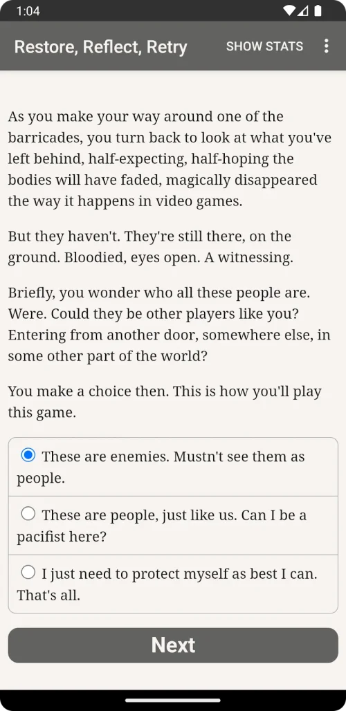 In Restore, Reflect, Retry MOD APK, the interface is your window into another dimension. You will be presented with complex scenarios where you must analyze the environment and the motives of others through text. The gameplay revolves around three core pillars: ‘Restore’ (recovering lost truths), ‘Reflect’ (contemplating the consequences of your psyche), and ‘Retry’ (navigating the branching paths to find the ultimate truth).
