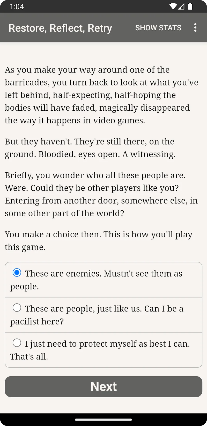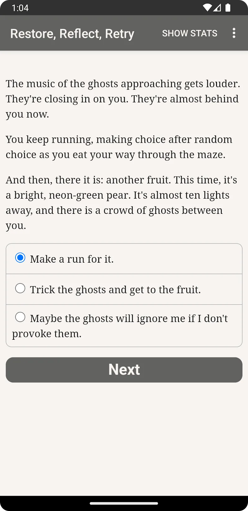 Step into a world where your imagination is your greatest enemy and your only tool for survival. Restore, Reflect, Retry MOD APK is a masterfully crafted interactive horror puzzle game based on the haunting prose of acclaimed author Natalia Theodoridou. Unlike traditional horror games that rely on jump scares and graphic visuals, this purely text-based adventure pulls you into a psychological abyss where every word matters and every choice carries weight.