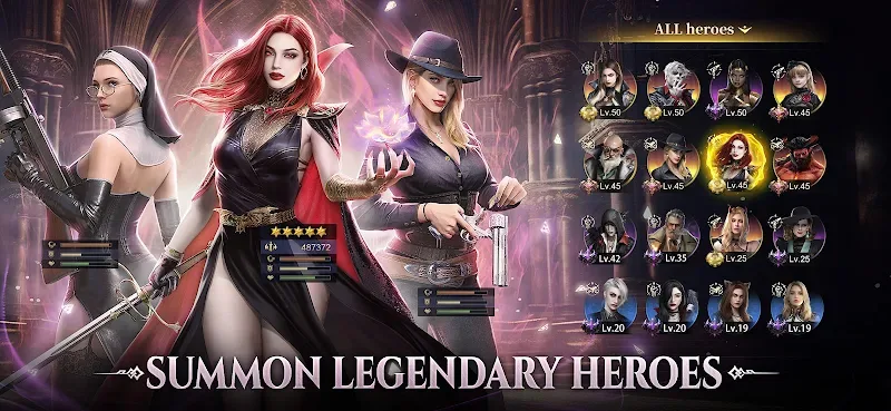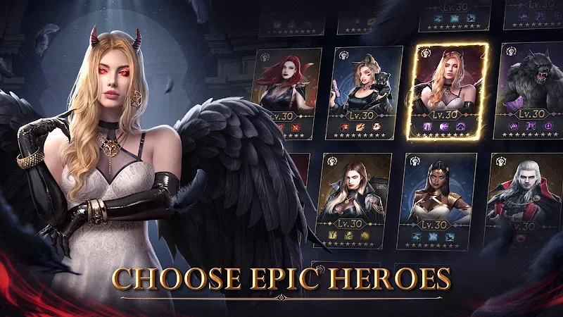 - Summon Legendary Dark Heroes: Recruit a diverse roster of powerful heroes from across the globe. Each hero possesses unique supernatural skills essential for defeating the vampire hordes and their monstrous leaders.