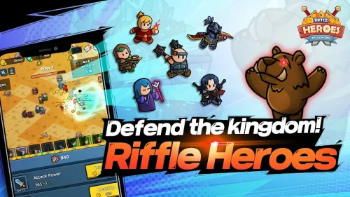 Reclaim your kingdom in Riffle Heroes MOD APK! Experience an uplifting Tycoon RPG with idle progression, village building, and strategic hero battles. Play for free now!