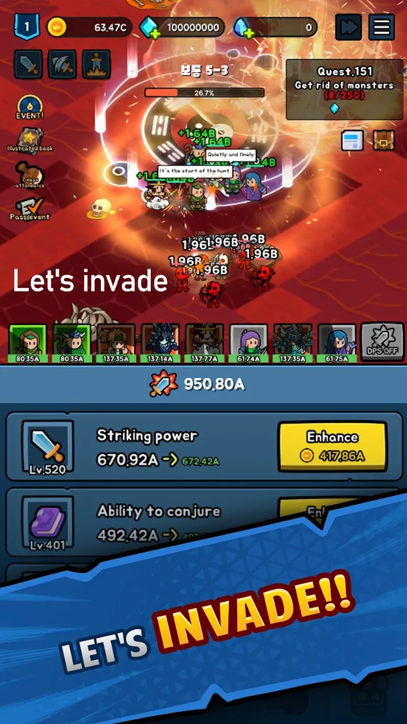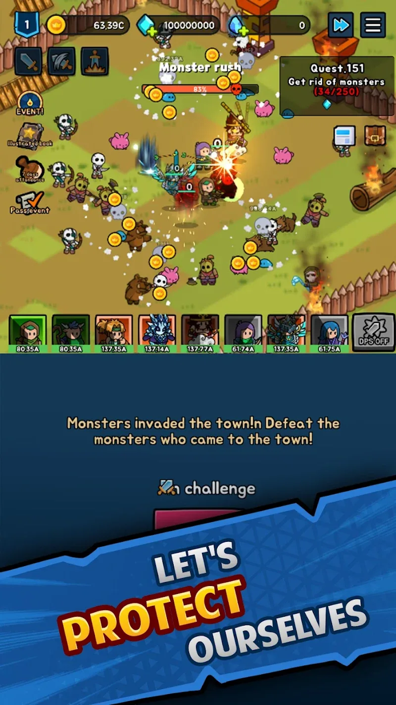 - Effortless One-Click Idle Progression: Experience the thrill of rapid growth without the repetitive grind. With intuitive one-click mechanics, you can level up your heroes, upgrade buildings, and gather resources instantly. Your kingdom continues to thrive and accumulate power even while you are offline!