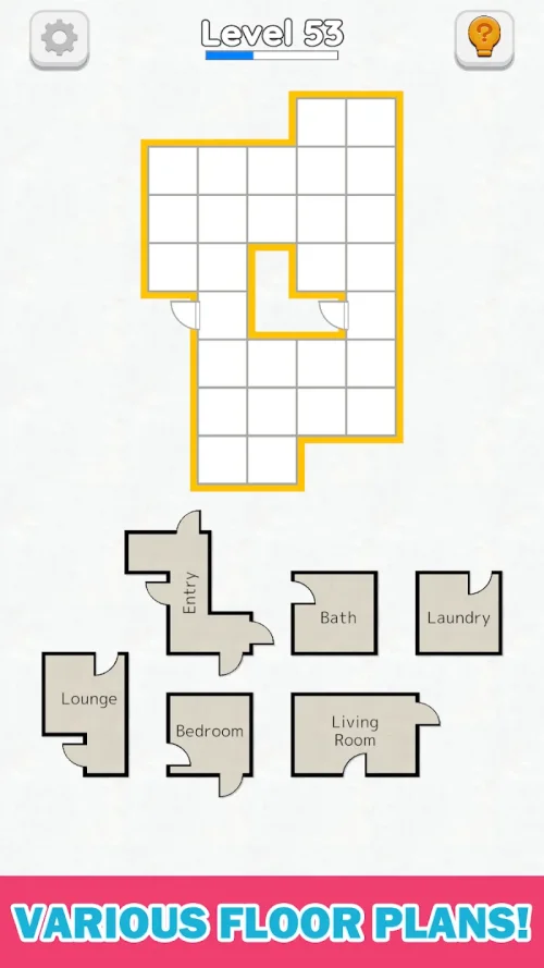 - Innovative Architectural Puzzles: Experience a modern twist on the classic Tangram mechanic. Fit uniquely shaped rooms into a designated floor plan to complete the house.